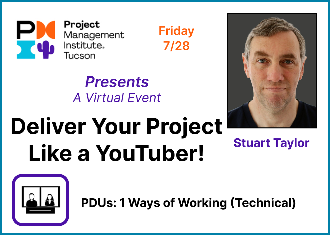 So Stuart started to teach YouTube creators how to apply project management skills to improve their videos. Now he is presenting how project managers can enhance their project approach and career development with skills and traits found among the most successful YouTubers.