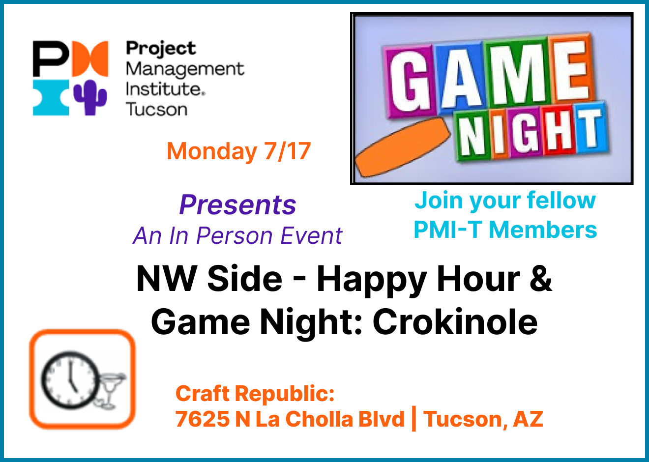 Join PMI-Tucson on the Northwest Side for a fun night of networking, knowledge-sharing, and games!